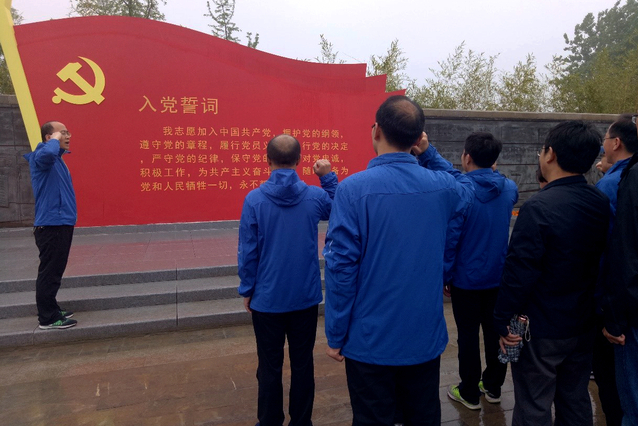 在沈浩纪念馆前,党员们面对鲜红的党旗,紧握右拳,重温入党誓词。重温入党誓词活动,目的是让全体党员时刻牢记入党誓词,坚定信仰,时刻牢记党的宗旨,时刻保持党的优秀传统和作风。要牢记第一身份是共产党员,牢记责任和义务,做一名合格的共产党员;要发挥党员的先锋模范作用,立足本职岗位,以忠诚、敬业、拼搏、奉献的精神,适应新形势,积极主动作为。牢记自己在党旗下的庄严宣誓,并用一生的实际行动来践行这一无上光荣的诺言。