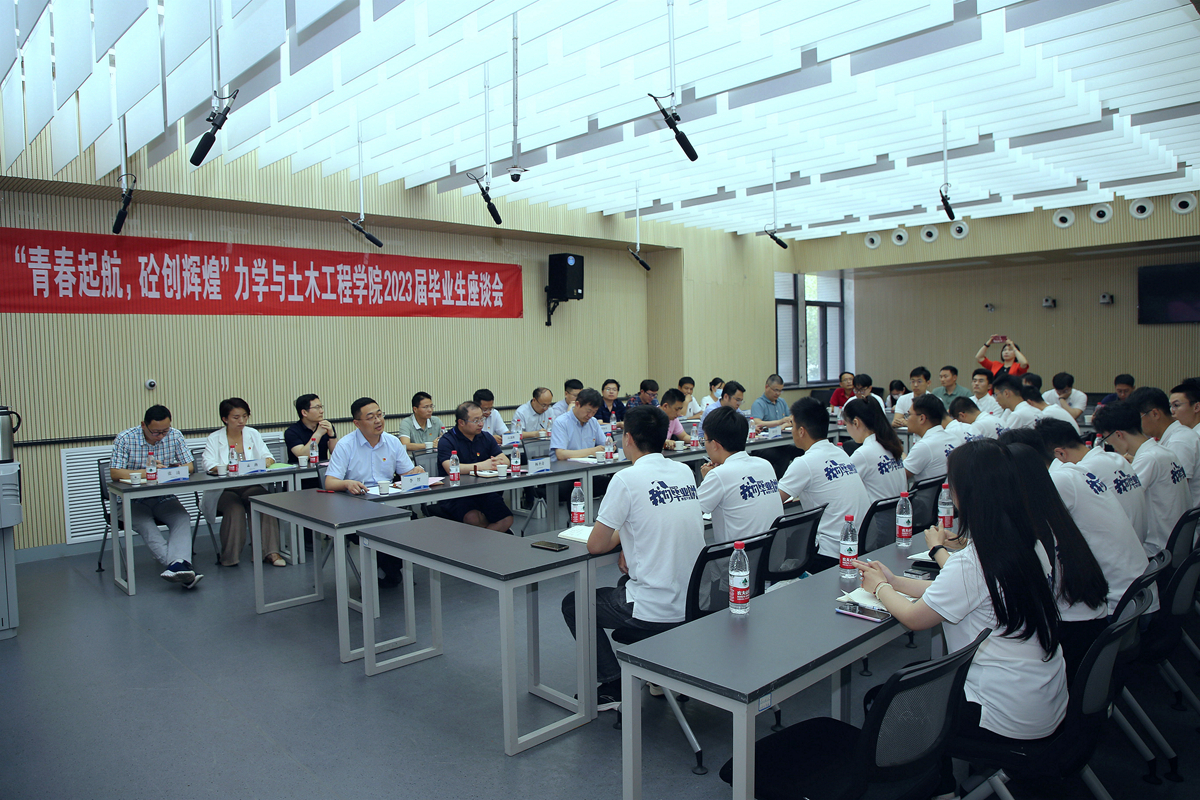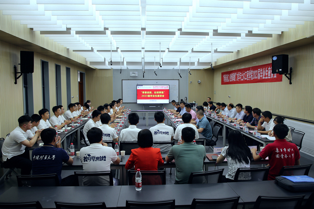 楼B201会议室举行2023届毕业生代表座谈会。院党委书记马占国、院长李树忱,副院长杨圣奇、张营营、周劲锋出席会议。党委副书记李智主持会议。