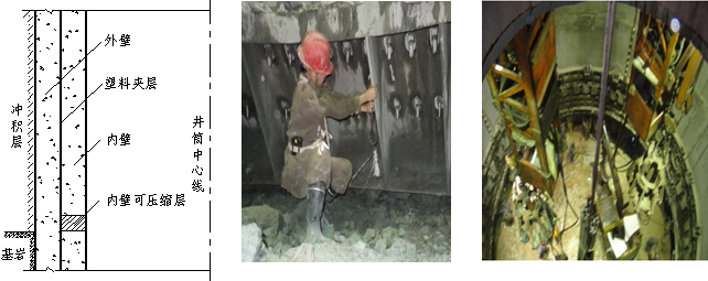 (1)首创了用钢质可缩装置改造井壁结构法治理井壁破裂灾害技术,研发了井壁安全治理关键技术。 (2)发明了低渗漏单层冻结井壁技术,创立了能考虑岩层地应力场不均匀性、孔隙水压作用和能充分利用基岩承载力的单层冻结井壁设计理论和方法,避免了带夹层的双层复合井壁大量漏水问题。 (3)建立了深部(冻)土力学试验方法体系,揭示了深部土强度非线性机制与微观物理机制。 (4)开发了中心回转抓岩机、挖掘机协同作业技术;大直径井筒凿井井架、吊盘、伞钻、抓岩机和砌壁模板等成套装备;在超大直径深立井安全、高效施工的标准化、模式化、机械化和专业化等方面进行了创新。 (5)掌握了地铁联络通道的冻结法施工工艺设计及冻结施工成套装备,提出了富水软弱地层加固方案。 |