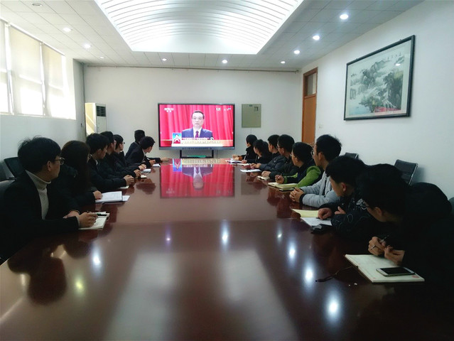 楼A220召开学生干部会议,一同观看第十三届全国人民代表大会第一次会议开幕式,听取国务院总理李克强作的政府工作报告。此次会议由学生党建工作指导老师刘晴主持,兼职辅导员路铭、赵文婷及本科生、研究生党员工作站主要学生干部到场参加。