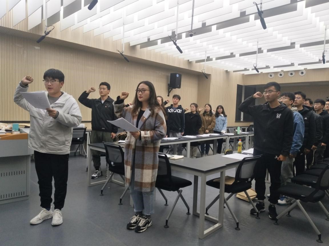 楼B201开展“重读入党志愿,重温入党誓词”主题党日活动。本次活动由工程管理本科生党支部书记卢晨宁和交建本科生党支部书记徐君共同主持,两支部全体党员参加活动。