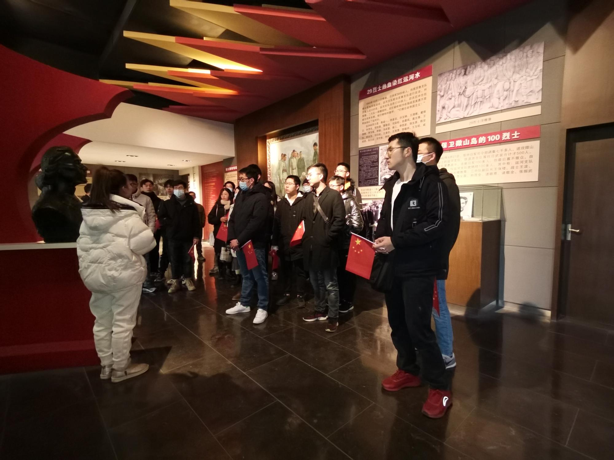 上午8时,全体学生党员整装待发,乘车前往30公里外的贾汪区卧龙抗战景区,参观运河支队抗日纪念馆。运河支队抗日纪念馆是目前国内唯一一座全面反映苏鲁边界运河支队十四年抗战史实的大型专题纪念馆,一件件历史文物、一幅幅真实照片展现在眼前,同学们不时停下脚步仔细观看,认真听取工作人员的讲解,深切感受抗战时代革命先烈勇于牺牲、甘于奉献的崇高精神和爱国情怀。