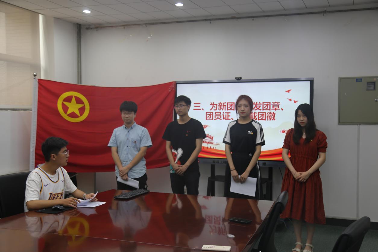 会议伊始,团委书记李亮分别从青年勇于担当、发挥榜样力量、立足本职工作三个方面鼓励同学们立大志、成大才、担大任,并结合实例引领同学们加深了对“中国共产党是中国人民和中华民族的先锋队,是中国特色社会主义事业的领导核心”这句话的理解,激励同学们在党的坚强领导下不忘初心,砥砺前行。之后,两位新发展团员魏弘晔、马睿芊在领誓人的带领下,面向团旗进行了入团宣誓,并由两位介绍人为他们颁发了团章、团员证和团徽。团委学生副书记王裕轩向两位新发展入团团员讲解了团的章程和组织,介绍了团员的权利和义务。最后,团委书记李亮对两位新发展团员的加入表示欢迎,希望他们积极向身边优秀的老团员学习,不断加强理论学习与自身政治思想的提升。在此基础上他还嘱咐新团员在之后的学习工作中严格要求自己,遵守相关规定,履行团员义务。