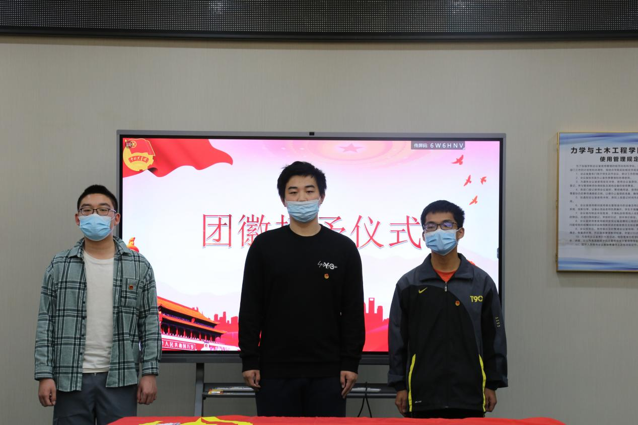 团委组织部部长张锌亿主持,20级工程力学2班曹旭杰、21级土木2班陈镆、20级建环(合作办学)1班祁俊文三位同学在本次入团仪式中正式成为共青团员。