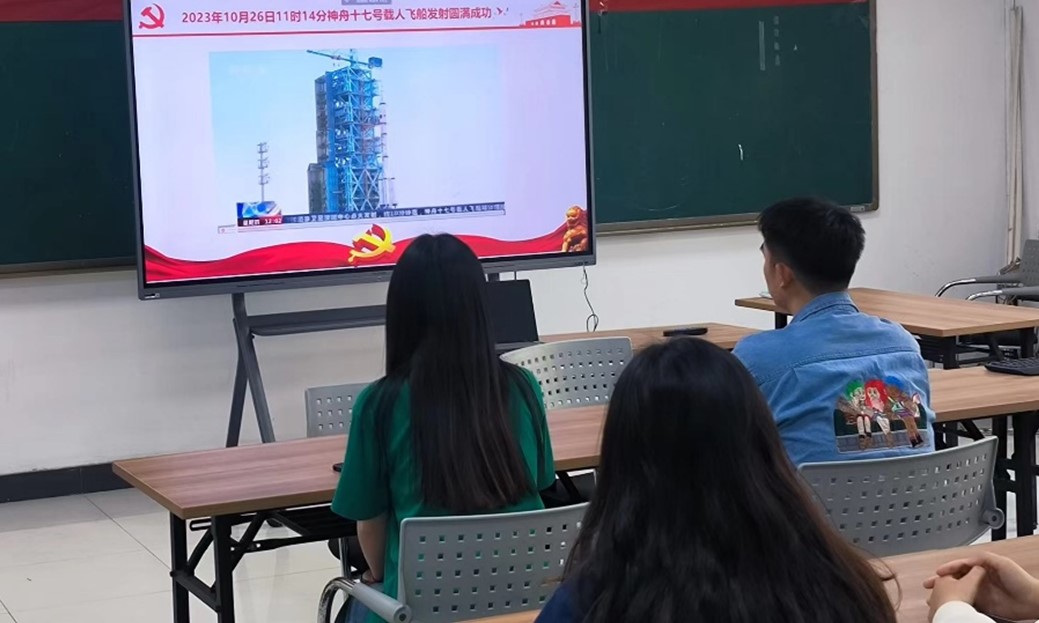 活动伊始,党支部活动负责人成诺微就该品牌活动的目标、内容展开介绍,并阐明了本次活动价值意义所在。随后,全体人员集体学习习近平总书记关于建设航天强国做出的重要论述,领读相关内容,并集体观看神州十七号载人飞船成功发射的新闻视频。“5、4、3、2、1、点火”、“逃逸塔分离”、“助推器分离”,随着一声声精准指令,中国航天的辉煌成就和卓越实力尽数展现。观看结束后,大家纷纷围绕点赞中国航天、致敬航天英雄、弘扬航天精神三个方面展开了深入交流。