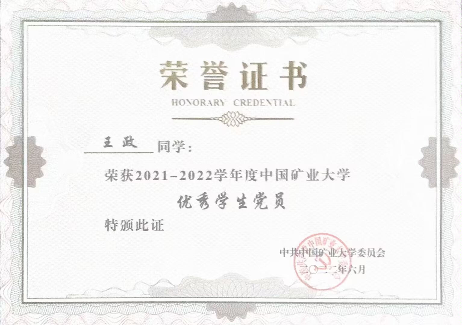 王政,男,汉族,2000 年 11 月出生,中共党员,中国矿业大学澳门六合彩最准资料