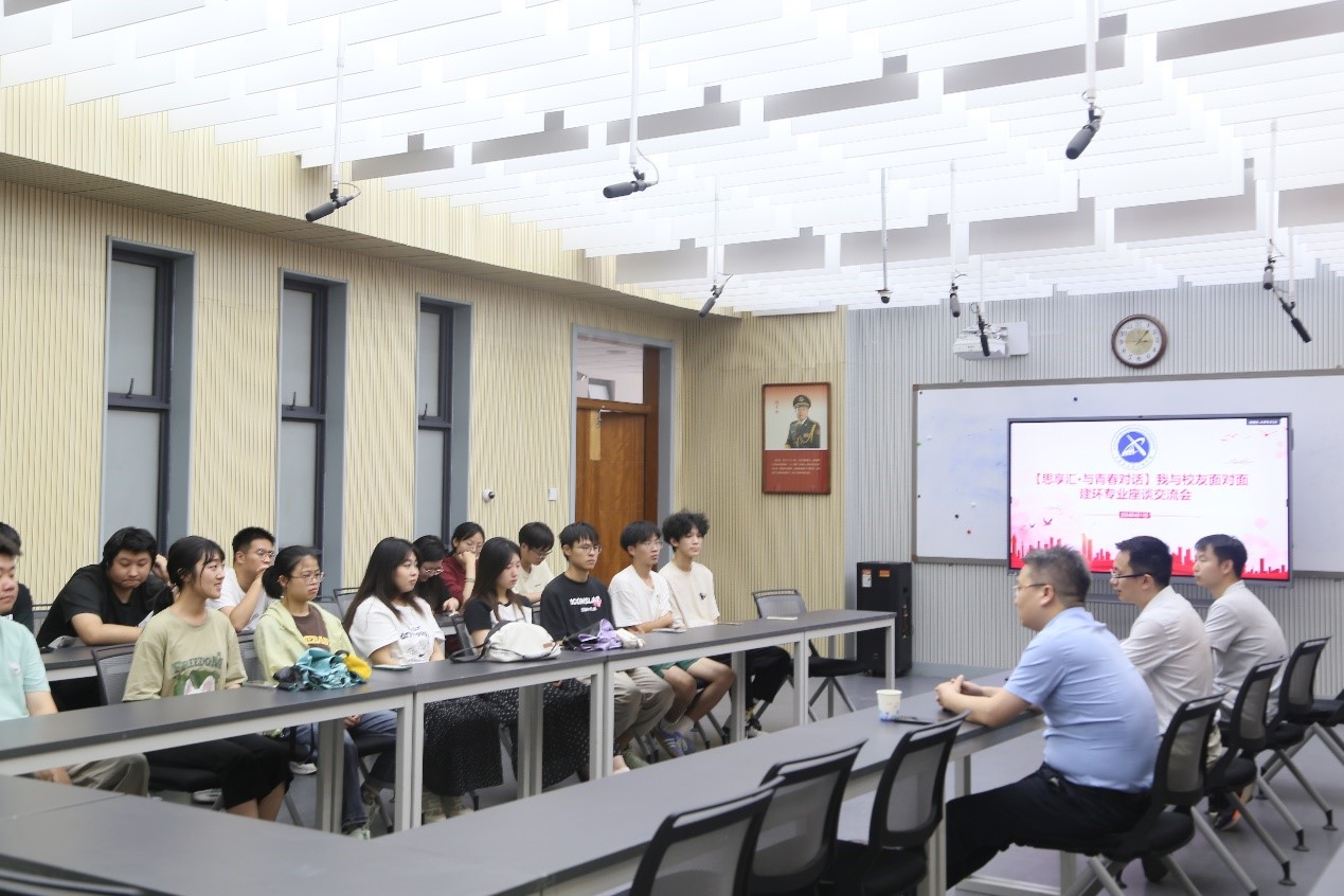 交流会上,两位校友各自从自己的求学经历、职业道路以及在行业中的成长经验出发,与同学们分享了宝贵的见解和经验。他们重点讲解了在大学期间学习好专业知识的重要性,建议同学们要有专业自信、提前规划目标、善于抓住机遇、敢于吃苦耐劳。他们从环境保护与可持续发展的现代理念出发,鼓励同学们从实现双碳目标入手,学习碳排放、能源消耗、建筑用能等方面专业知识,在未来的职业生涯中积极投身于能源领域。