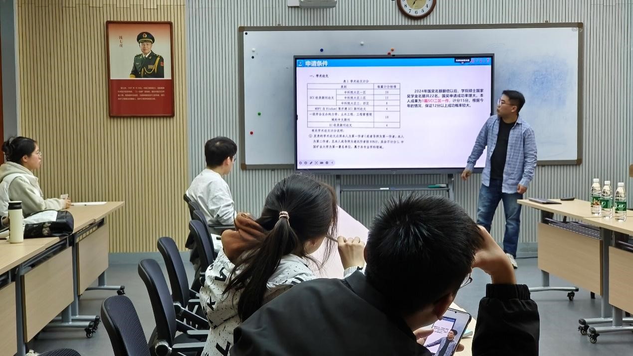 研究生会成功举办研究生“国奖交流分享会”。2023-2024学年度国家奖学金获得者李越、梁燕翔、孙鑫山和庄洪杰四位同学受邀作分享。