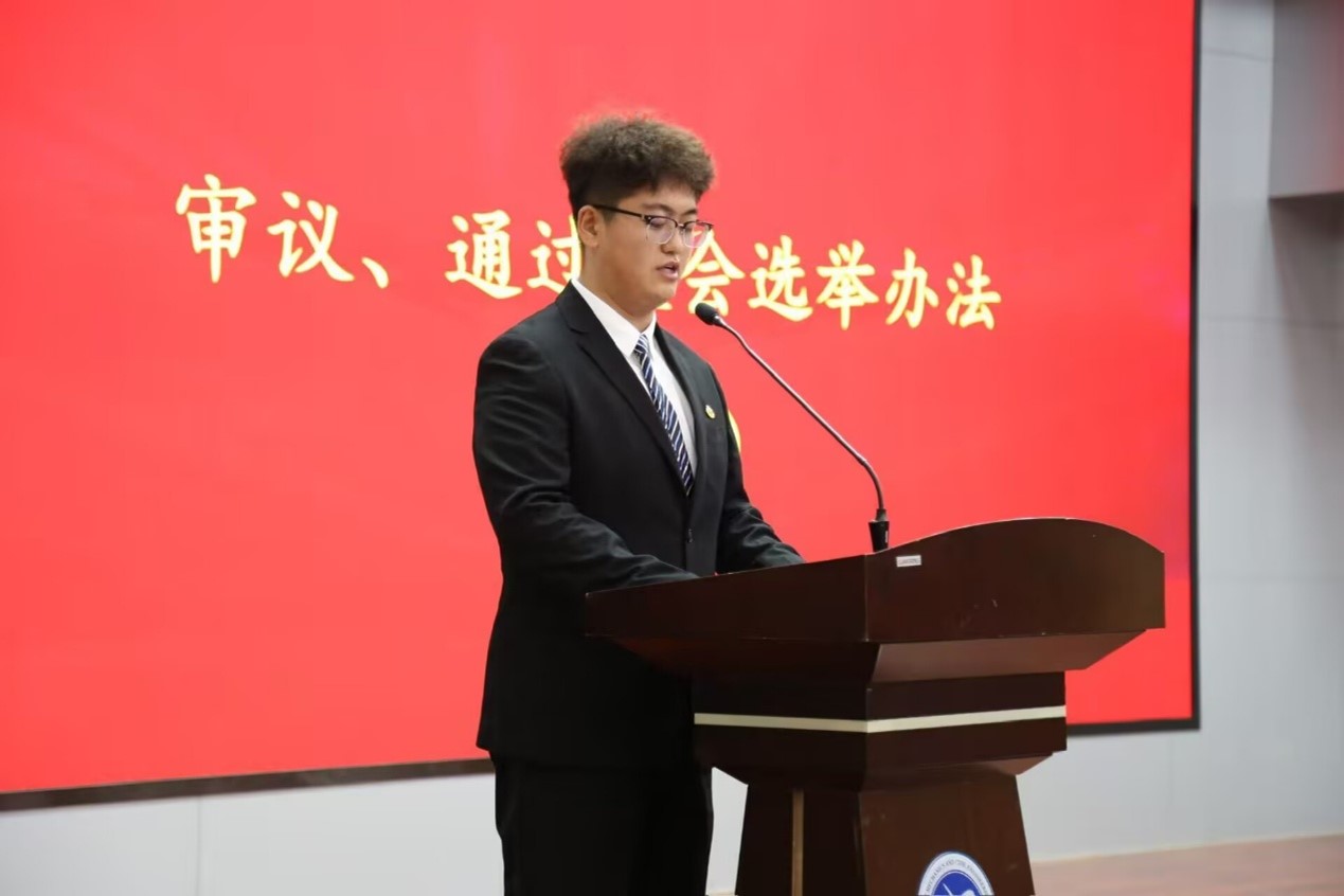 大学生传媒中心主任冯子豪同学宣布审议通过大会选举办法