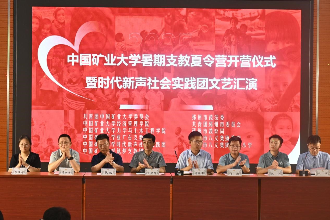 筑梦支教团暑假支教夏令营开营仪式在邳州市八义集镇中心小学举行。邳州市政法委副书记耿波、团委副书记李佳宁、教育局副局长汤相普,八义集镇镇长尚艳军,中国矿业大学团委副书记丁建范,澳门六合彩最准资料