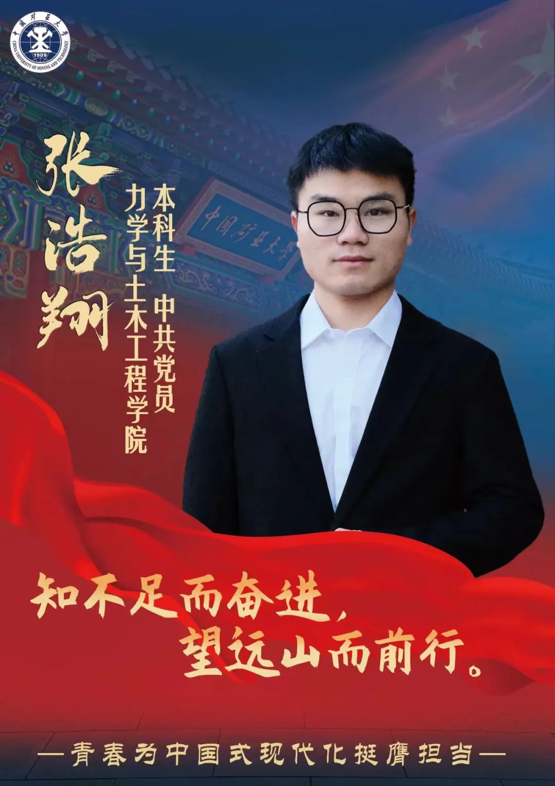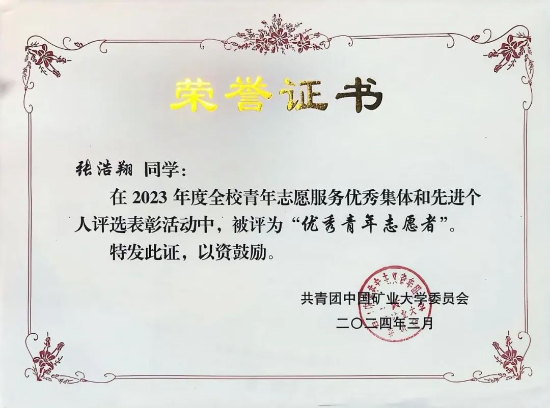 2022级本科生张浩翔在评选中脱颖而出,当选中国矿业大学第十九届“青者矿大'校园年度人物”