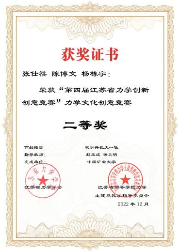 第四届“江苏省力学创新创意竞赛”力学文化创意奖赛二等奖