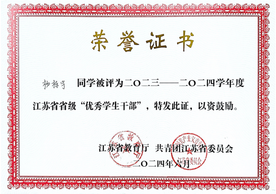 江苏省省级“优秀学生“干部