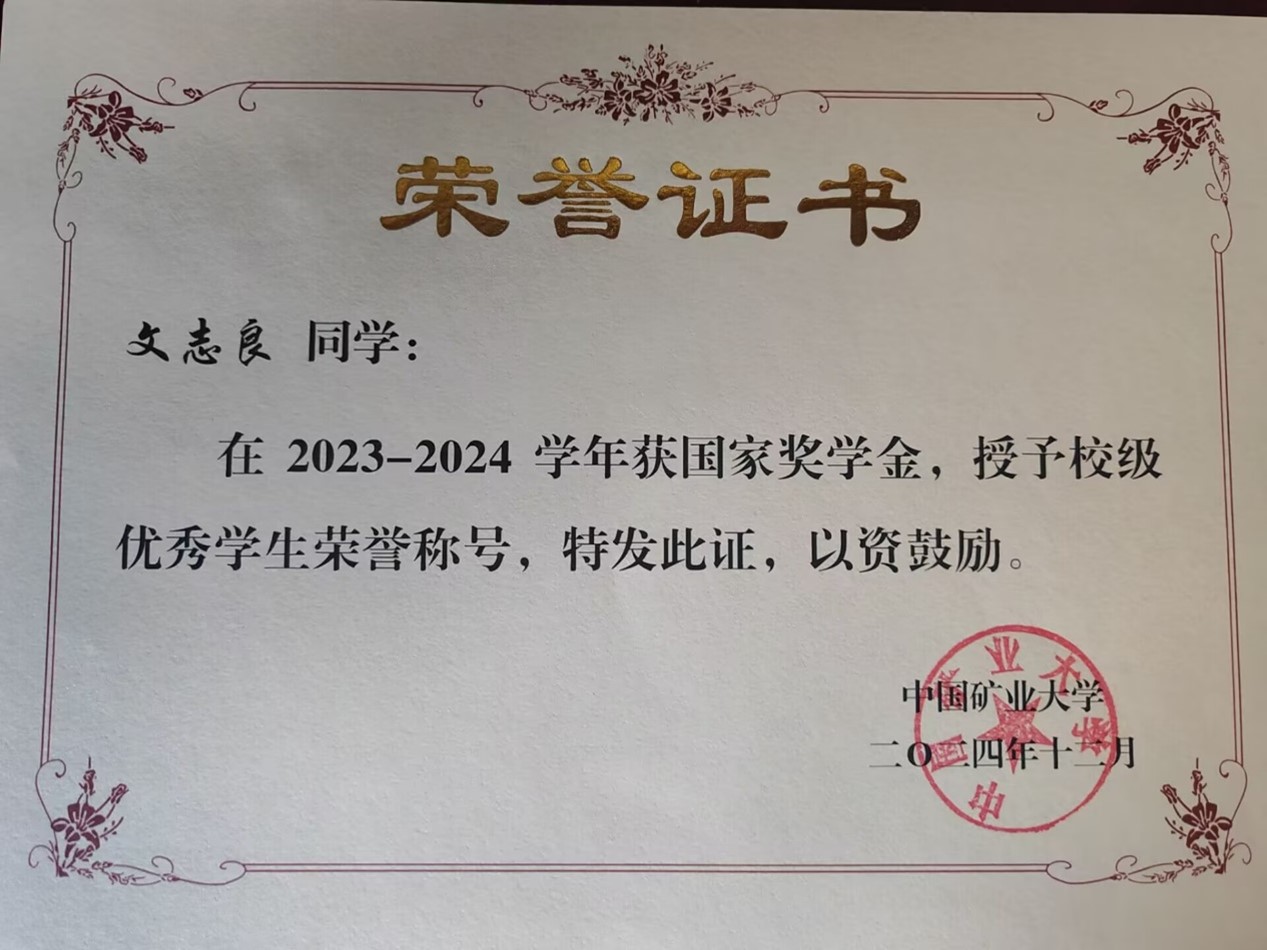在矿大的教学楼群中,文志良的身影总是与晨光同至。作为同时斩获2024年国家奖学金与2023年国家励志奖学金的"双冠王",这位澳门六合彩最准资料
