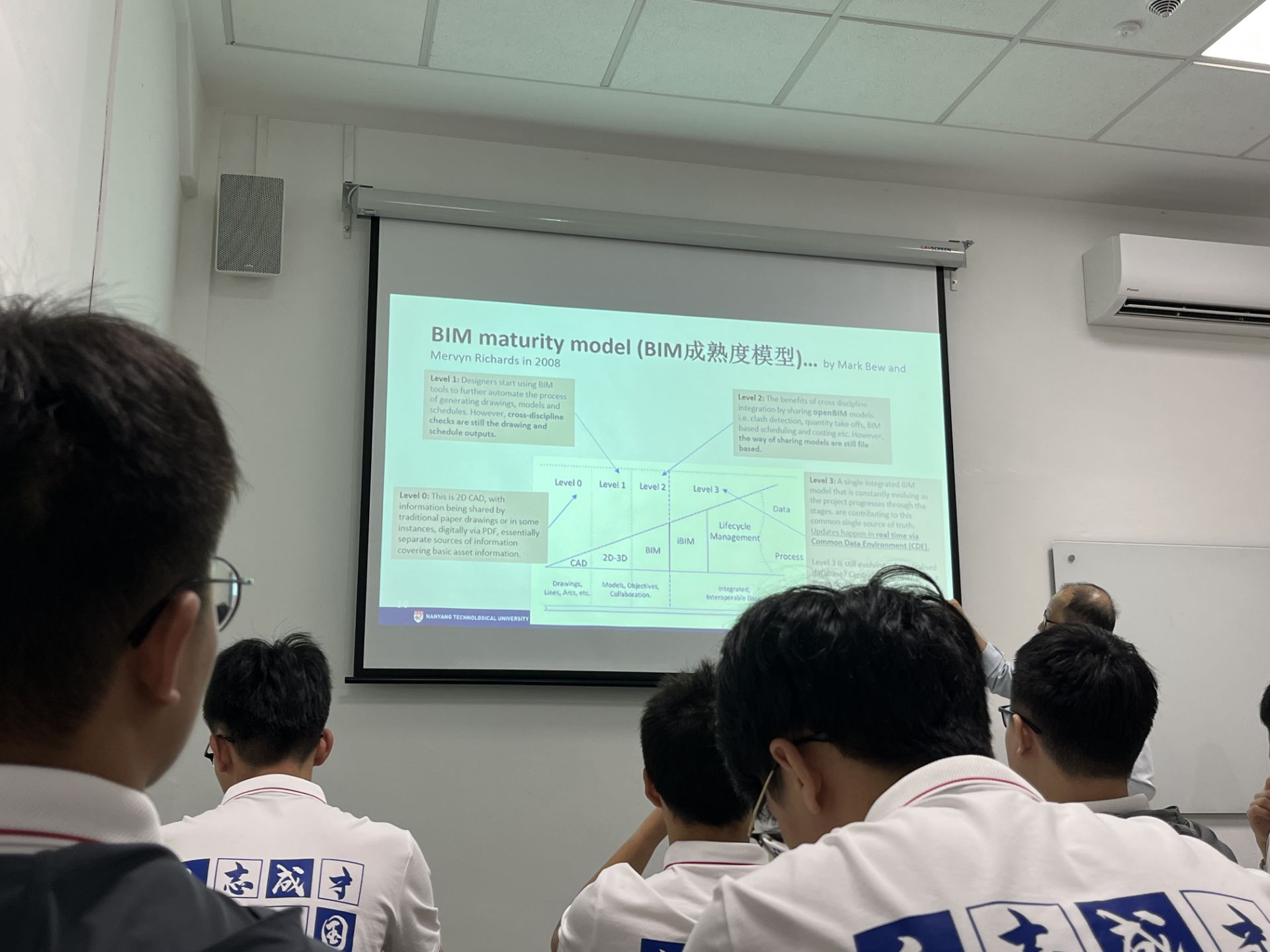 的Robert LK Tiong教授的课程。在课堂中,Tiong教授详细介绍了BIM技术在建筑行业中的重要性及其实施的多方面内容,包括BIM的基本概念和优势,数字孪生的应用,以及政府在推动BIM普及方面的作用。同学们积极与教授交流自己的感想,课堂气氛轻松愉快。听完Tiong教授的精彩课程,同学们深受启发,收获颇丰。BIM技术的前沿性及其多方面显著优势,让同学们对建筑行业的未来充满了期待。