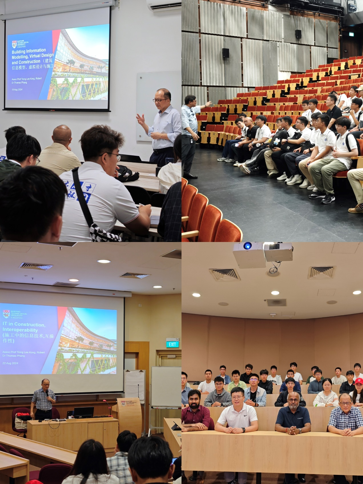 的Tiong Lee Kong,Robert教授的课程《建筑信息模型、虚拟设计与施工》。在课堂中,Robert教授详细介绍了BIM技术在建筑行业中的重要性及其实施的多方面内容,主要包括BIM的基本概念和优势,数字孪生的应用,以及政府在推动BIM普及方面的作用。同学们积极与教授交流自己的感想,课堂气氛轻松愉快。