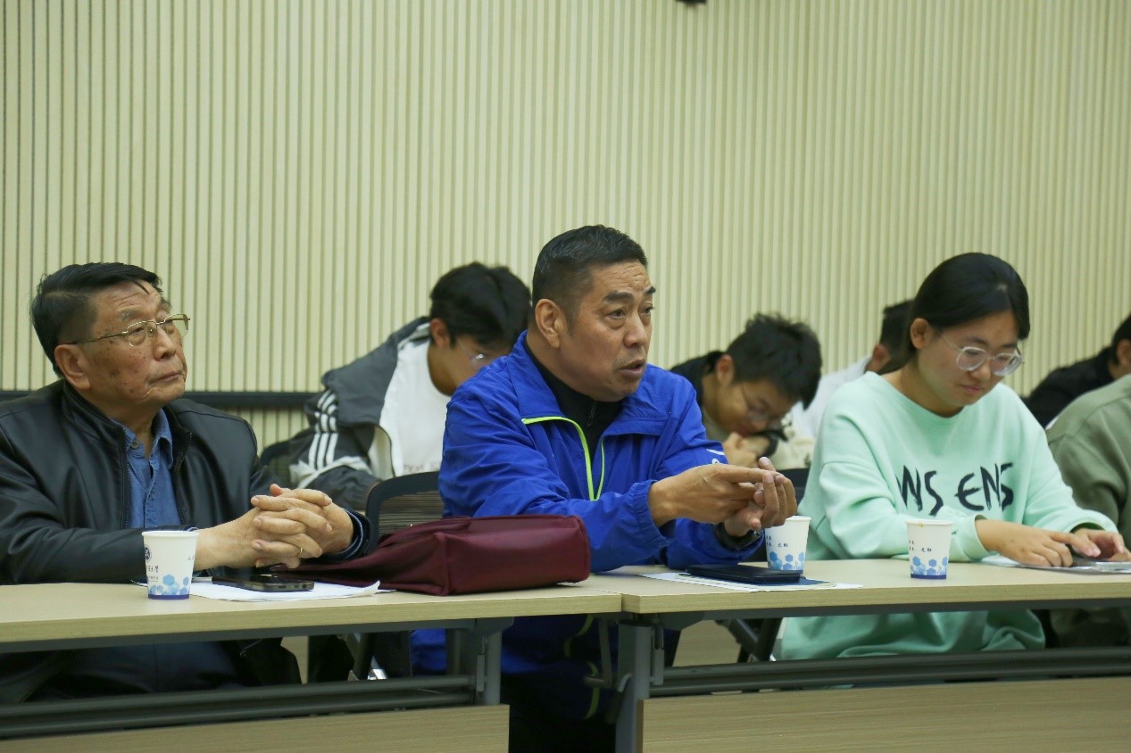 周钢和郭晋蒲进行了总结性的交流互动。周钢以自身经历为引,激励同学们既要心系祖国,也要拥有国际视野,要爱国爱党、脚踏实地、勤勉学习,同时从多方面提高自身素质和能力,为后续新的“钱七虎班”树立好榜样。郭晋蒲满怀深情地用自己的人生故事勉励同学们不仅要在学业上追求卓越,还要注重体质锻炼与思想境界的提升,同时从共青团的发展历史为入手鼓励同学们平时多学习多思考,做一位合格的社会主义接班人。两位老师还共同强调,同学们应当发扬钱七虎院士等老一辈科研楷模的吃苦耐劳精神,深入钻研,致力于成为对社会有所建树的人才。