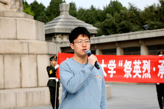 本科生2022级“钱七虎班”班长王宇祺同学在仪式活动上以《清澈的爱只为中国》为题作了代表发言,用铿锵有力、掷地有声的言语发出新时代青年学子“立志成才,报效祖国”的誓言强音。他讲述了杨靖宇等英烈、陈祥榕等烈士、黄旭华等科学家的感人事迹,分享了自己与钱七虎院士面对面交流的深切感悟,汇报了个人的学习实践经历和发展成长收获。他说,要以参加本次清明祭英烈仪式思政课为契机,重温历史受教育,提振精神再出发,继承先辈遗志,传承英烈精神,激发奋进力量,把个人理想与祖国民族命运紧密相连,以爱国奋斗精神引领成长成才,努力成为担当民族复兴重任的时代新人。