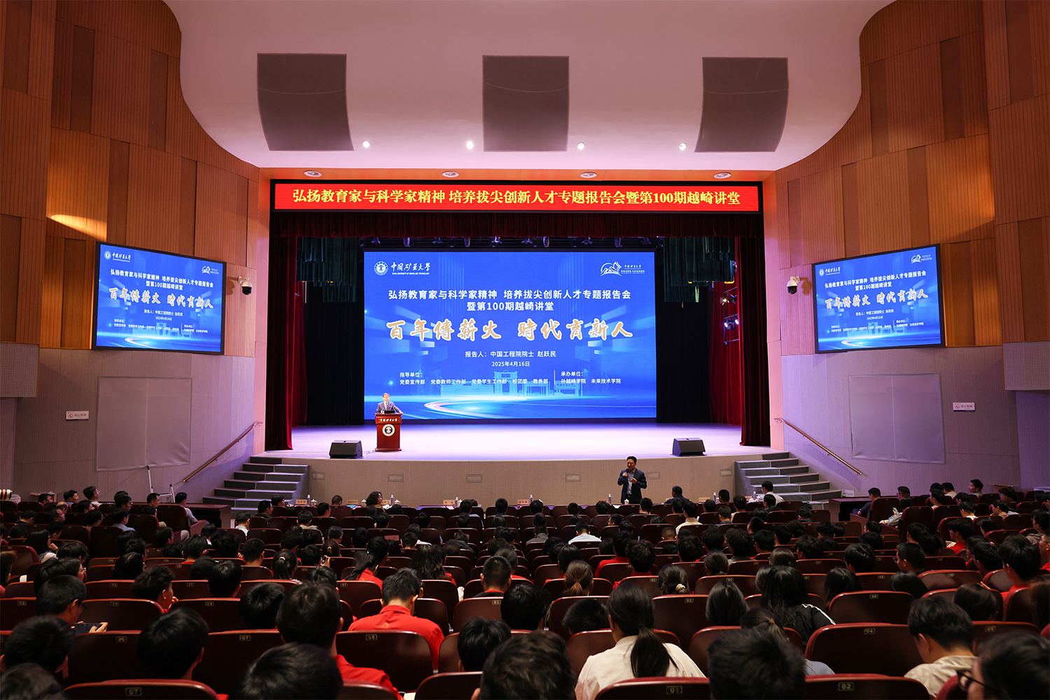 赵跃民院士在报告中系统阐释了教育家精神和科学家精神的核心内涵与时代价值,介绍了我国科技发展现状,并结合“双碳”目标等国家重大战略需求强调了大力培养拔尖创新人才的重要意义。他回顾了中国矿业大学百十余年历史沿革和一代代矿大人薪火相传的奋斗史,结合矿大的“大先生”典型事迹,勉励大家秉承先辈精神,努力学习,勇于探索,为中华民族伟大复兴贡献力量。他深情回忆了导师陈清如院士的悉心培养,并结合自身经历,介绍了如何带领团队攻克科学技术难题,指出科学研究既要“仰望星空,脚踏实地”,又要有“苟利国家生死以,岂因祸福避趋之”的崇高价值追求。他鼓励同学们要积极抓住新一轮科技革命、能源革命和“双碳”目标带来的机遇,志存高远,砥砺前行,努力提升综合能力,为建设教育强国、科技强国、人才强国贡献矿大的青春智慧和力量。